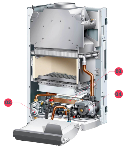 Мощный циркуляционный насос позволяет сохранять давление в больших отоплительных системах, а благодаря байпас насос котла защищен от прокачки теплоносителя в тупик, что предотврощает поломку насоса