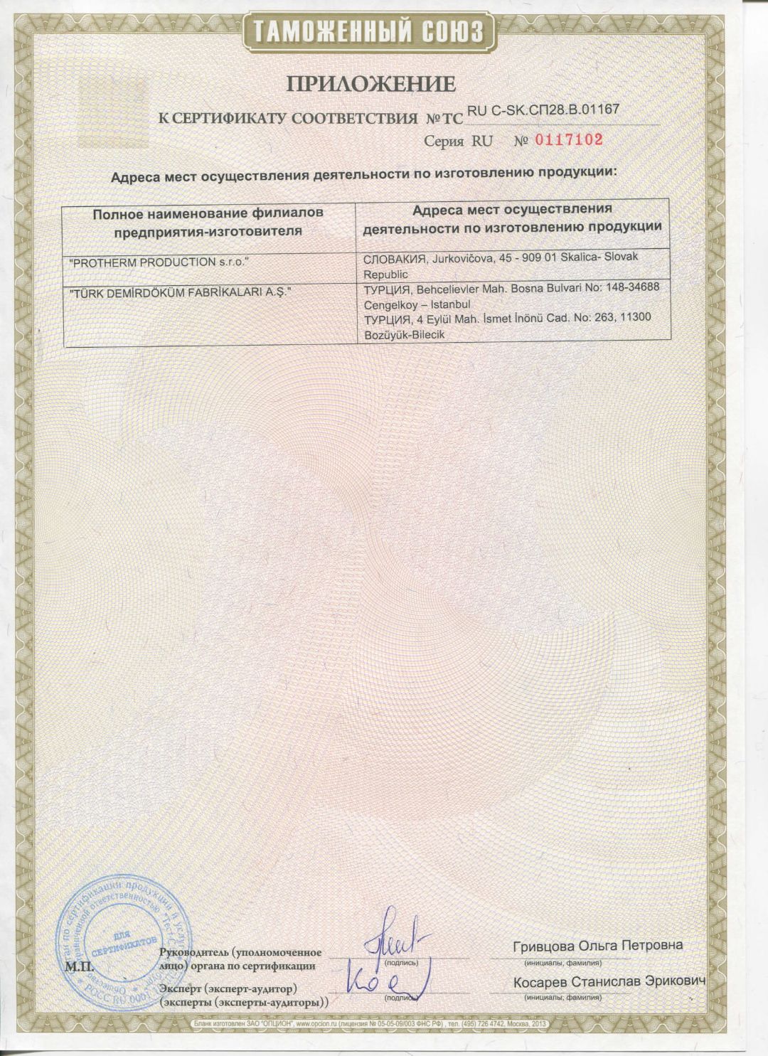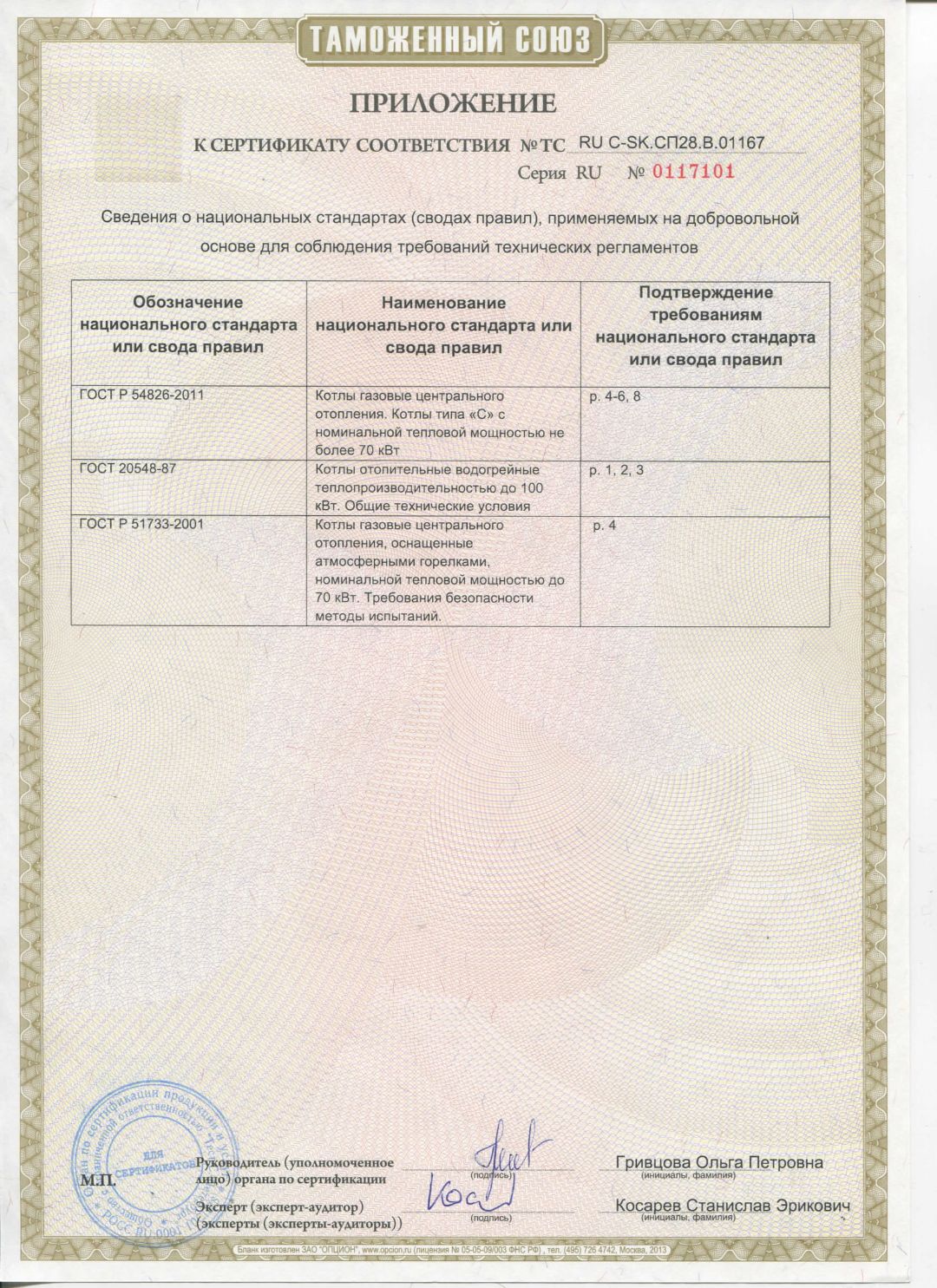Приложение к сертификату